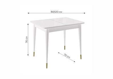 Стол обеденный Мане К1100 опоры белый(зол) / столешница белый сатин ЛДСП Стекло