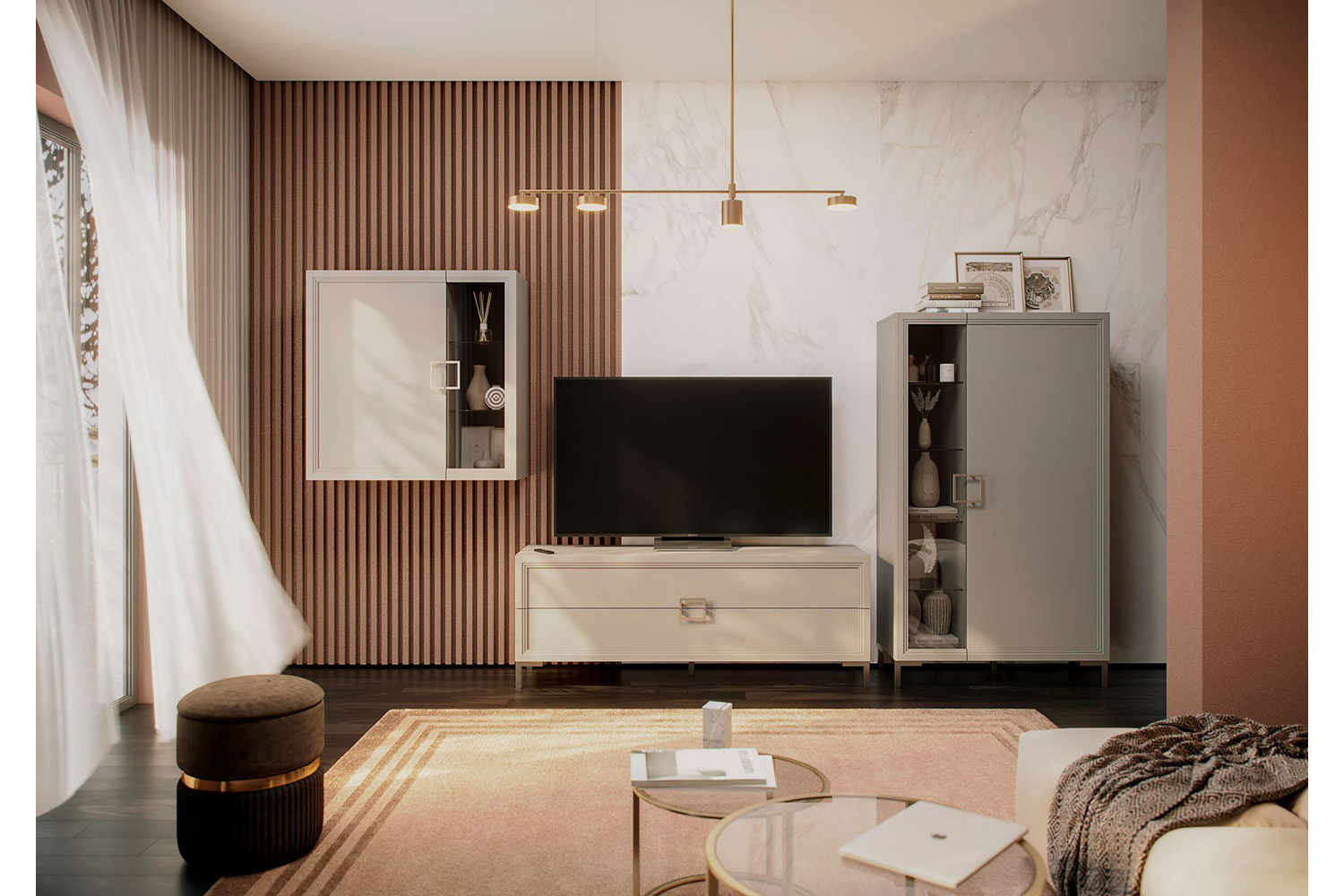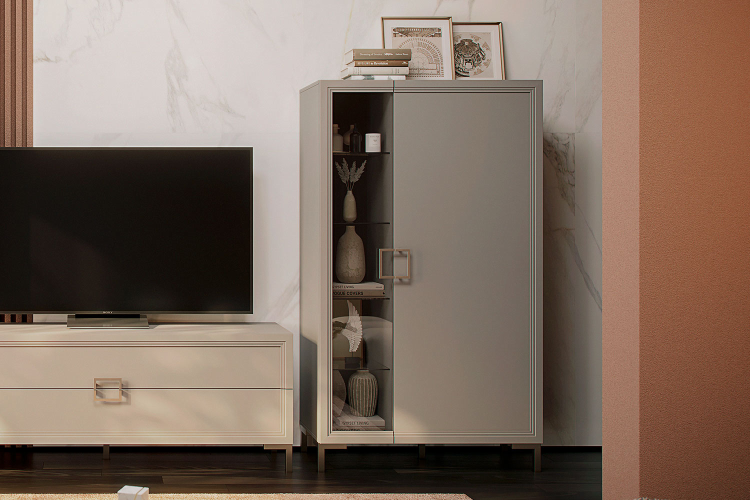 Купить Шкаф Дольче со стеклянными полками (4 шт.) и полкой ЛДСП в интернет-магазине мебели «Ангстрем»
