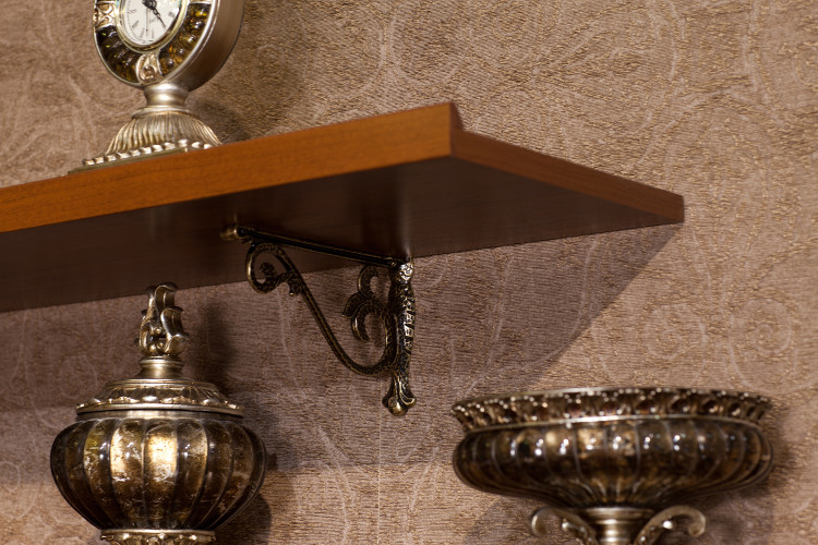 - Полка АГ-025.03 навешивается на стену на декоративных менсолодержателях (МакМарт);