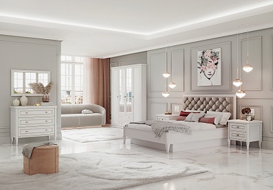 • Комод с 3 секциями: крайние секции комода — отделения с одной съемной щитовой полкой за распашными фасадами;